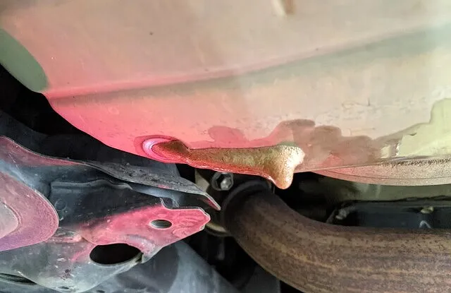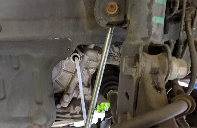 過走行で今の状態が気になるとの事でしたので、1度オーバーフロープラグからフルードを抜き取り点検ですが・・・