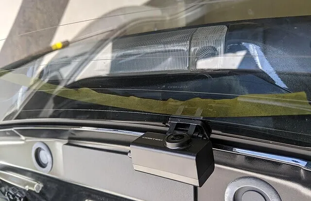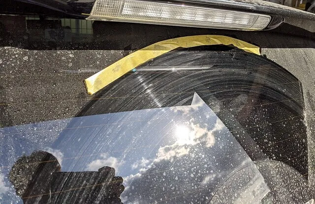 まずはリアからワイパーで水がはける位置を確認してカメラを貼り付けます