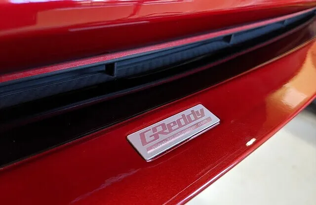 最後にグレッディのロゴプレートを貼り付けて作業完了です