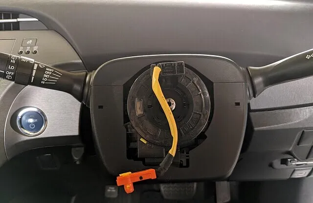 ステアリングホイールを取り外すとエアバックの配線だけが残ります