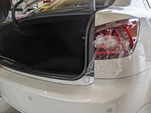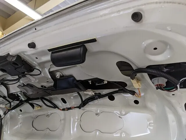 トランク側も内張りを外しナット止めのみなのですがナットが落ちない様に気をつけて作業します。