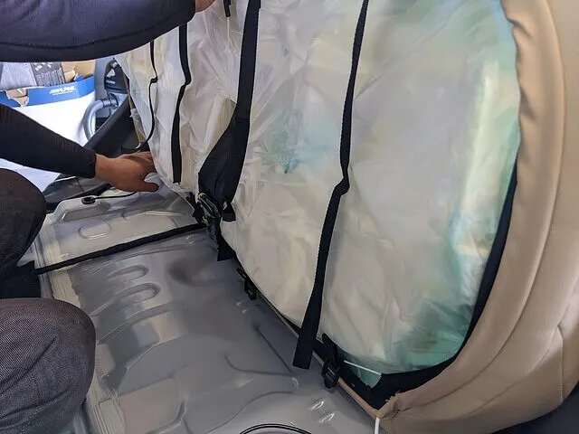 フロントシートの取り付けは比較的難しい所は無いのでカバーを破らない様に気をつけながら被せていくだけです。