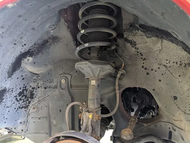 リフトアップ前にアッパーマウントのナットを緩めておくのですが、サビが出ていた為に潤滑剤を添付して緩めやすくしておきました。