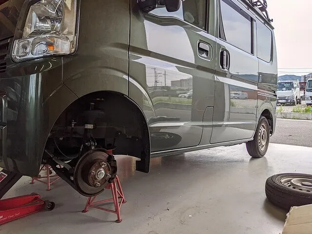 北九州市小倉南区 DA17V エブリイ アップサス 取り付け タイヤホイール交換 ワイズガレージ