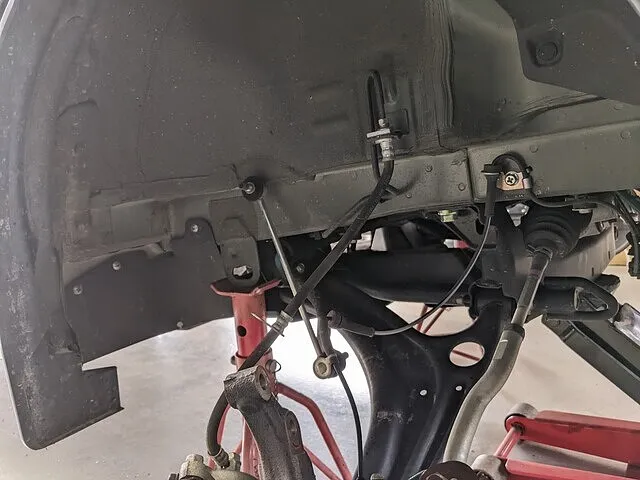 スタビリンクロッドやブレーキホースも忘れず取り付けます。