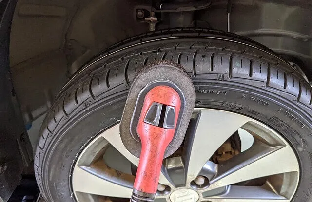 タイヤ保護とつや出しのためタイヤワックスを濡らさせて頂きます