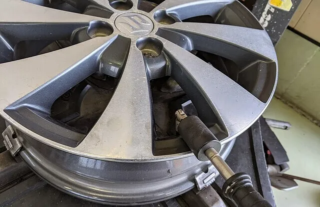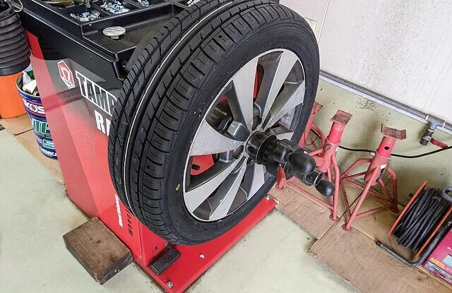 タイヤチェンジャーにてタイヤ組み換え後、ホイールバランサーにてバランス調整を行います