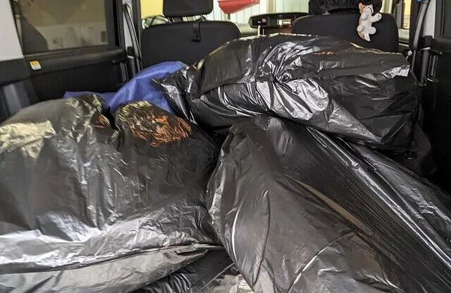 取り外した純正タイヤホイールは袋に入れ積み込みます