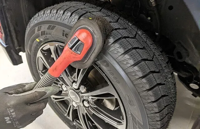 車両に装着しているタイヤホイールと交換してタイヤ保護のためタイヤワックスを塗らさせて頂きます