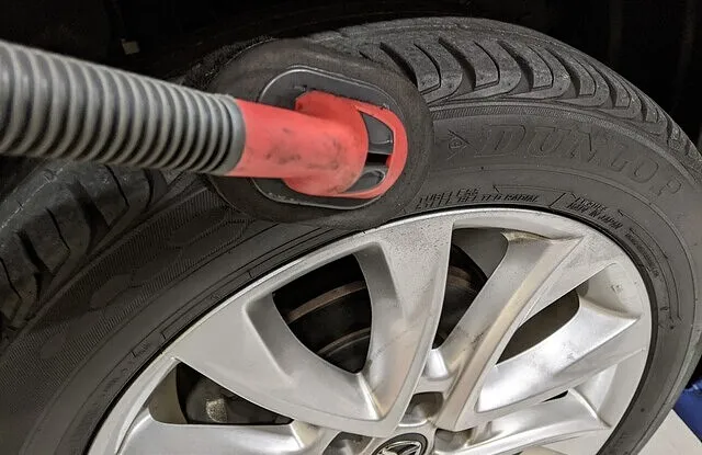 ホイールバランス調整後、車両へ取り付けタイヤ保護とつや出しのためタイヤワックスを濡らさせて頂きます