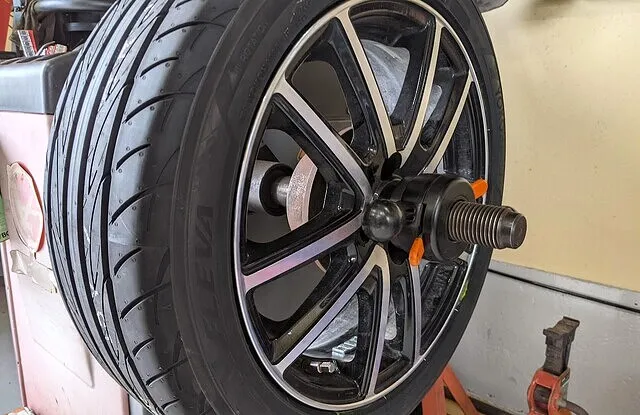 ホイールバランス調整後、車両へ取り付けます